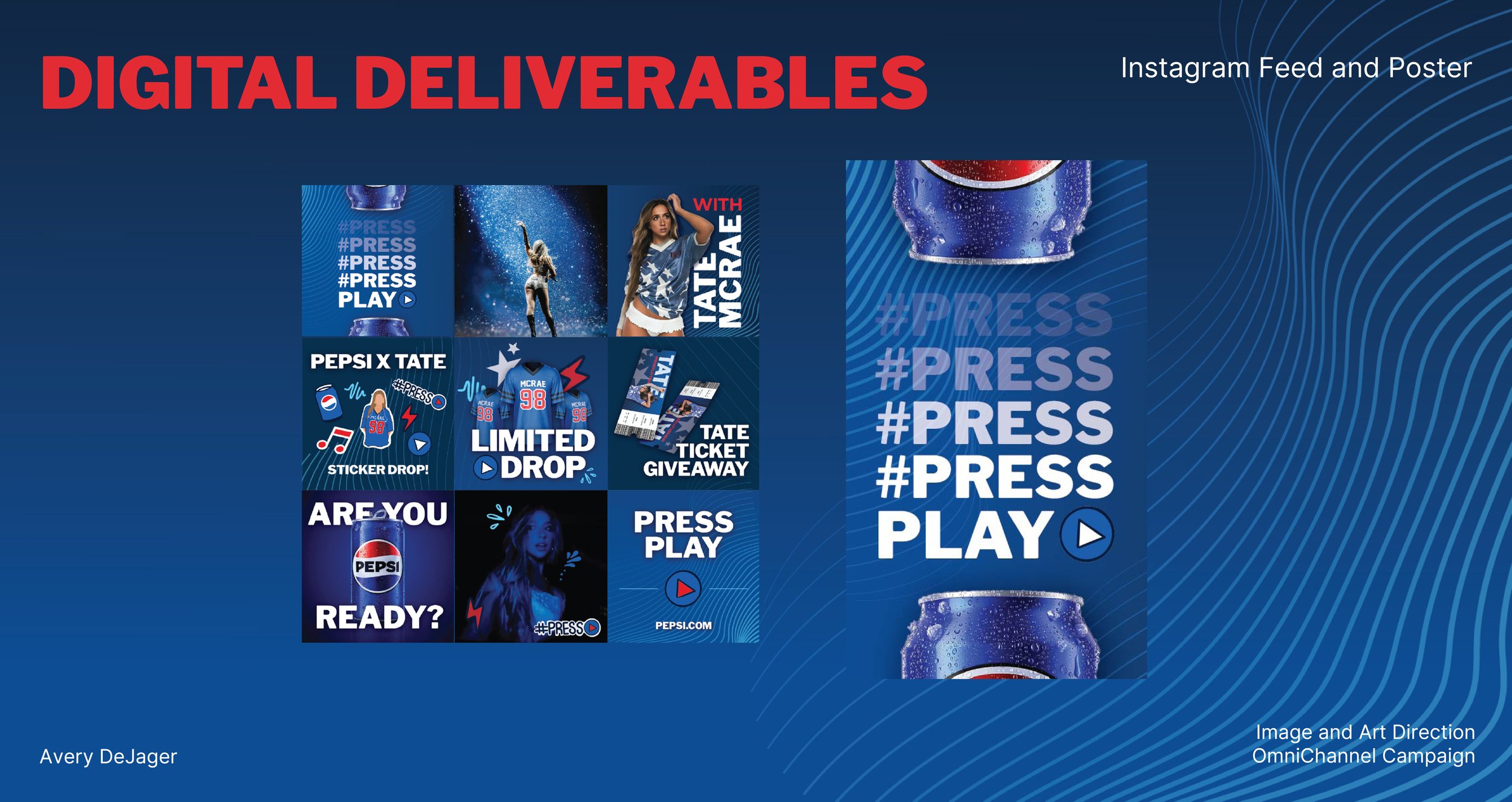 I created a collaboration with Tate McRae, giving fans the chance to win tickets to her Press Play Tour by purchasing Pepsi products. The campaign was supported by multi-channel deliverables, including social content, in-store promotions, and branded assets that reinforced a fun, energetic, and music-centered experience.